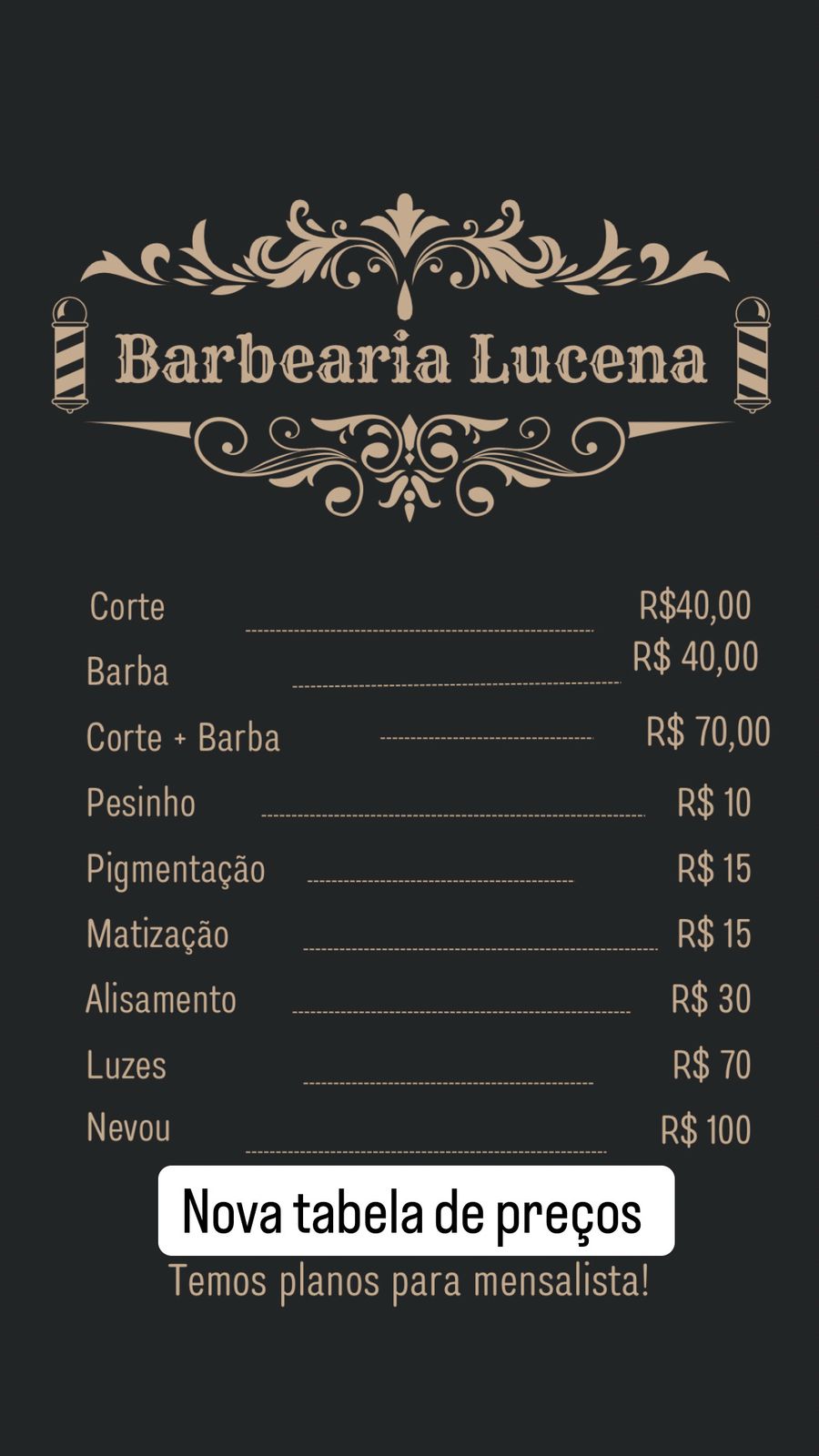 Atualizar o preço dos serviços e adicionar a tabela de preços.